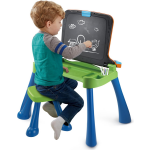 Met VTech Mijn Magisch Bureau 5 in 1 haal je een interactief bureau in huis dat eenvoudig getransformeerd kan worden in een krijtbord of tekenbord. Dit veelzijdige speelgoed biedt talloze activiteiten waarmee je kind kan leren, ontdekken en plezier kan beleven.