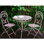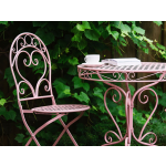 Nostalgisch en charmant balkonset voor een romantische sfeerMaak jouw tuin of balkon extra bijzonder met dit prachtige 3-delige bistroset met een vintage touch. Het roze, poedergecoate frame met prachtig open scrollwerk brengt een charmante en nostalgische sfeer met zich mee. Gemaakt van hoogwaardig ijzer, is deze buiten set niet alleen gemakkelijk schoon te maken, maar gaat hij ook jarenlang mee met het juiste onderhoud.El... lees meer over dit product