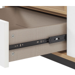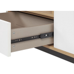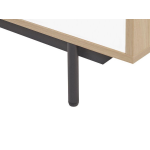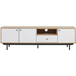 Beleef onvergetelijke film- of gameavonden met dit moderne tv-meubel! Dit kastje biedt voldoende opbergruimte voor spelconsoles, dvd's, kabels en andere accessoires. Zelfs snacks voor een perfecte avond in de bioscoop kunnen gemakkelijk worden opgeborgen in de ruime kasten. De witte kastdeuren en de lichte plank in eikenhoutlook geven het kastje een stijlvolle uitstraling. Daarnaast zorgen de gepoedercoate metalen poten voor stabiliteit en passen ze perfect bij het geheel.