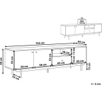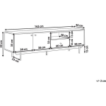 Dit tv-kastje heeft een retro stijl en is uitgevoerd in een lichte houtkleur. Het is gemaakt van bewerkt hout, met vezelplaat als hoofdmateriaal en staal als overig materiaal. Het heeft één plank en drie deuren, inclusief een lade voor extra opbergruimte. De afmetingen van het kastje zijn 163 cm breed, 40 cm diep en 50 cm hoog, met een draagvermogen van 30 kg voor de lade, 30 kg voor de plank en 120 kg voor het blad.