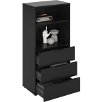 Stijlvolle opslag met het zwarte FMD dressoirCreëer een opvallende wandkast met het FMD dressoir met drie lades en open schappen. Dit vrijstaande dressoir is ideaal voor het opbergen van je souvenirs en boeken en zal een moderne uitstraling geven aan elke woonkamer of kantoorruimte. Combineer het met andere verfijnde meubelstukken, zoals een old style salontafel of een praktische mobiele woonkamertafel van FMD.Duurzaam en f... lees meer over dit product