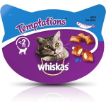 Whiskas Temptations Zalm is dé snack waar uw kat van zal smullen. Deze heerlijke kattensnack combineert een krokant laagje met een zachte en smakelijke binnenkant, en heeft een onweerstaanbare zalm smaak. Deze speciale variant van de Temptations is gemaakt en verpakt om lang vers te blijven.