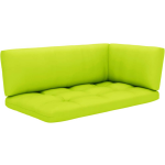 De set wordt geleverd inclusief een tafel, twee middelste banken, een hoekbank en passende kussens. De afmetingen van de tafel zijn 60 x 60 x 25 cm, terwijl de middelste en hoekbanken respectievelijk 110 x 65 x 55 cm meten. De zithoogte vanaf de grond is 25 cm en de kussens hebben een dikte van 10 cm.