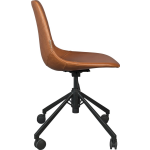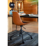 De bureaustoel is bekleed met vintage PU-leder, wat niet alleen een luxueuze uitstraling geeft, maar ook duurzaam en gemakkelijk te onderhouden is. Het zwarte vierteensonderstel met zwarte wielen zorgt ervoor dat je moeiteloos door de hele ruimte kunt bewegen, van het bureau naar de kast naar het koffiezetapparaat en weer terug.