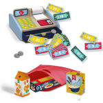 Maak van jouw speelhoek een echte supermarkt met deze prachtige houten kassa en bijbehorende winkelbenodigdheden. Klanten staan al in de rij en willen graag afrekenen, maar geen zorgen; jij hebt alles wat je nodig hebt in de kassa om wisselgeld te geven - echte speelmunten en biljetten. Zo kunnen kinderen op een realistische manier de rol van caissière vervullen.