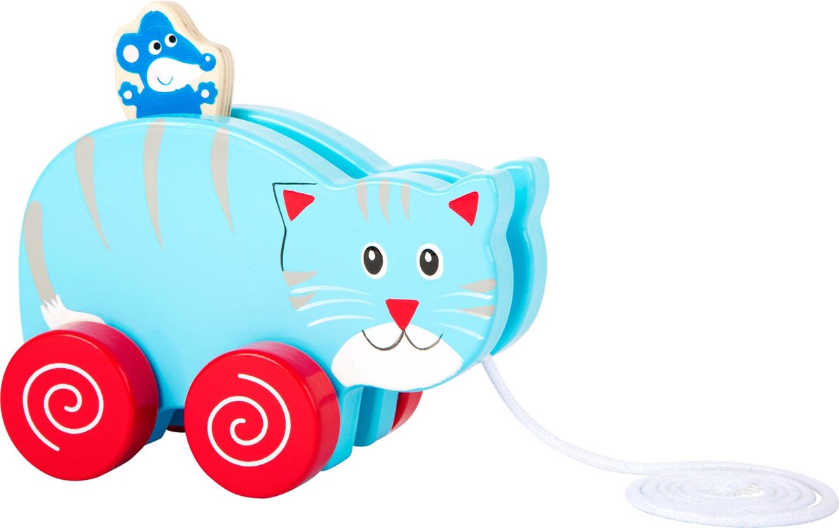 Small Foot Trekdier Kat En Muis Hout 13 X 8 X 10 Cm - Blauw