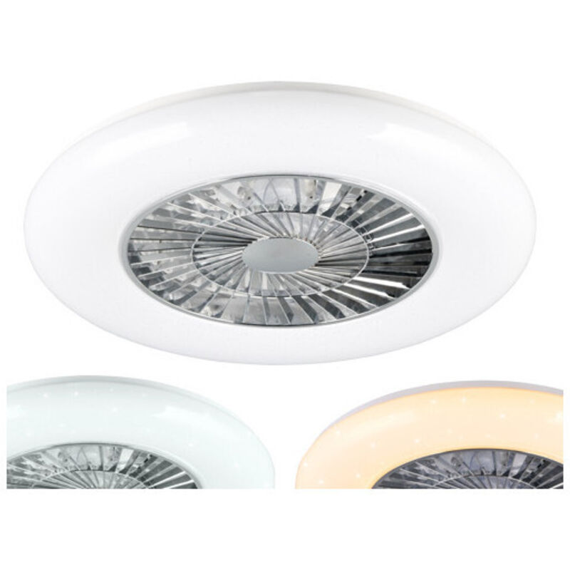 Met de Visby plafondventilator van Reality kunt u niet alleen genieten van verkoeling op warme dagen, maar ook profiteren van fijne verlichting. De chroomkleurige ventilator is omgeven door een witte kunststof ring met LED's, die een betoverend sterlichteffect creëert. Dankzij de geïntegreerde dimmer kunt u de helderheid van het licht moeiteloos aanpassen, terwijl de traploze aanpassing van de lichtkleur praktisch is in elke situatie.