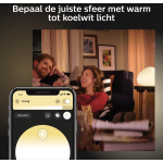 Voeg een vleugje tijdloos design toe aan je tafel of dressoir met de Philips Hue Wellner White ambiance tafellamp. Met de keuze uit maar liefst 50.000 verschillende wittinten, kun je het licht precies afstemmen op jouw behoeften. Of je nu wilt ontwaken, lezen, ontspannen, concentreren of energie wilt opdoen, deze lamp is er klaar voor. Naast het tijdloze design wordt de lamp geleverd met een Philips Hue dimmer switch, waarmee je eenvoudig de verlichting kunt bedienen. Maar ook met de Hue app op je smartphone of tablet heb je complete controle over de lamp. Schakel tussen voorgeprogrammeerde lichtrecepten, pas de helderheid aan en zet de lamp aan of uit.