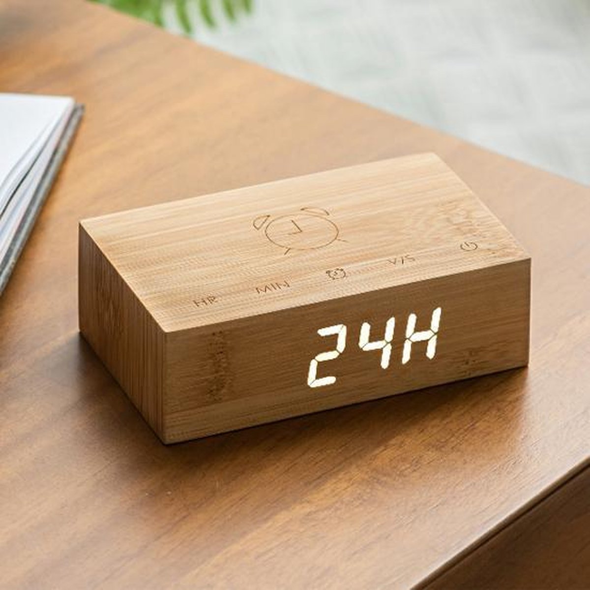 De Flip Click Clock is gemaakt van hout (kersen, walnoot, esdoorn en witte esdoorn) en is opgenomen in ons populaire geluid gestuurde LED-kloksysteem, met laser gegraveerde aanraakbediening bovenaan en de nieuwe flip-alarmtechnologie. Het is ontworpen om uw hele ervaring van dagelijks wekkergebruik te verbeteren.