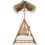 Voeg een vleugje tropische elegantie toe aan je buitenruimte met de overkapping van palmbladeren die bij deze schommelbank wordt geleverd. Deze overkapping geeft je schommelbank niet alleen een exotische uitstraling, maar biedt ook de perfecte hoeveelheid schaduw op warme zomerdagen.