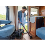 Dankzij de flexibele universele adapter is deze stofzuiger eenvoudig aan te sluiten op elektrisch gereedschap van Bosch Home & Garden en andere fabrikanten, zodat u een schone en georganiseerde werkplek heeft. Met de geïntegreerde opblaasfunctie kunt u bladeren wegblazen in de tuin of luchtbedden en waterspeelgoed snel oppompen. Geniet van extra acculooptijd in de Eco-modus en maak gebruik van de royale reservoirinhoud van 8 liter.