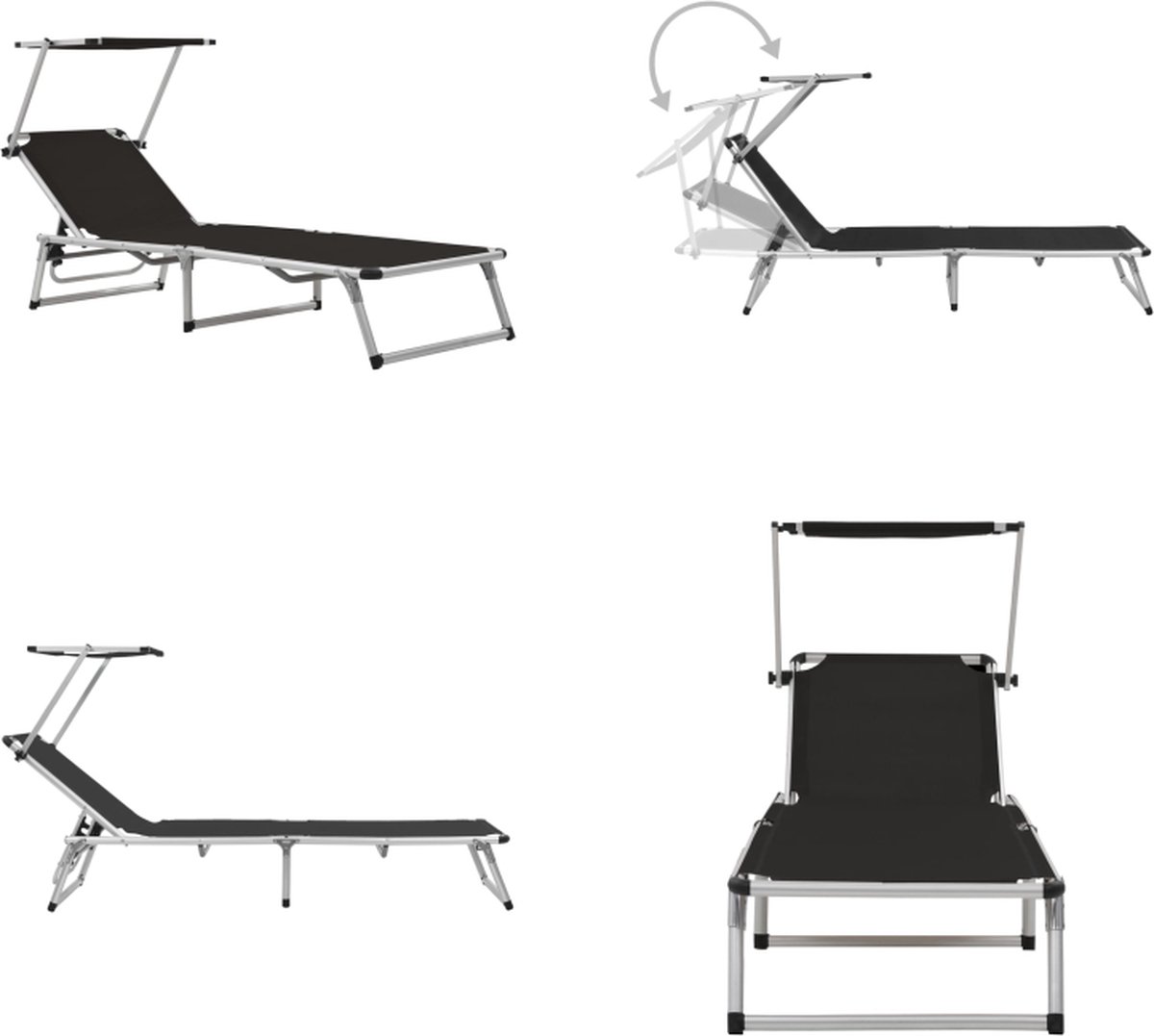 Vidaxl Ligbed Inklapbaar Met Dak Aluminium En Textileen - Zwart