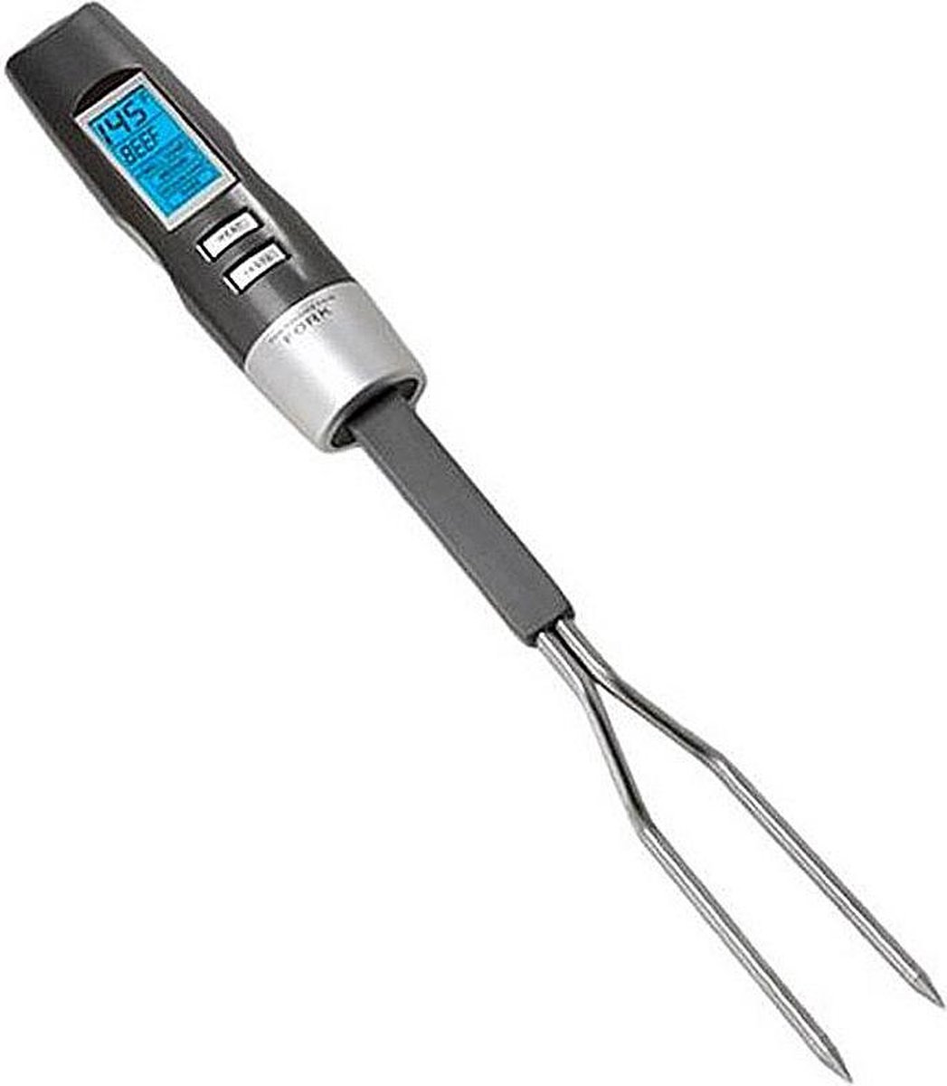 Met deze uitstekende digitale voedselthermometer kan je accuraat en met precisie detemperatuur van voedsel meten! Speciaal ontworpen voro vlees. Geweldig voor barbecues! Met dubbele metalen staaf en digitale display. Hij werkt op batterijen (2 x AAA inclusief). Lengte: ong. 35 cm.
