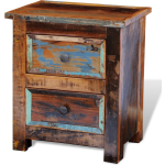 Houten nachtkastje in antieke stijl met gerecycled houtCreëer een sfeervolle en unieke uitstraling in jouw slaapkamer met dit prachtige houten nachtkastje in antieke stijl. Met zijn 2 handige lades biedt het kastje voldoende opslagruimte om al je spullen geordend te houden. Bovendien kan je op de stevige bovenkant een lamp of decoraties plaatsen, wat zorgt voor extra functionaliteit en stijl.Uniek en milieubewust designD... lees meer over dit product