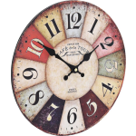 Het meerkleurige ontwerp van de klok geeft een nostalgische uitstraling aan je interieur. Of je nu een vintage liefhebber bent of gewoon op zoek bent naar iets speciaals, deze wandklok zal zeker de aandacht trekken.