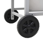 De barbecue is uitgerust met 2 stevige zwenkwielen, waardoor je hem eenvoudig kunt verplaatsen naar de gewenste locatie. Let op: om een gasfles aan te sluiten heb je een gasslang en een goede drukregelaar nodig, deze worden niet meegeleverd.
