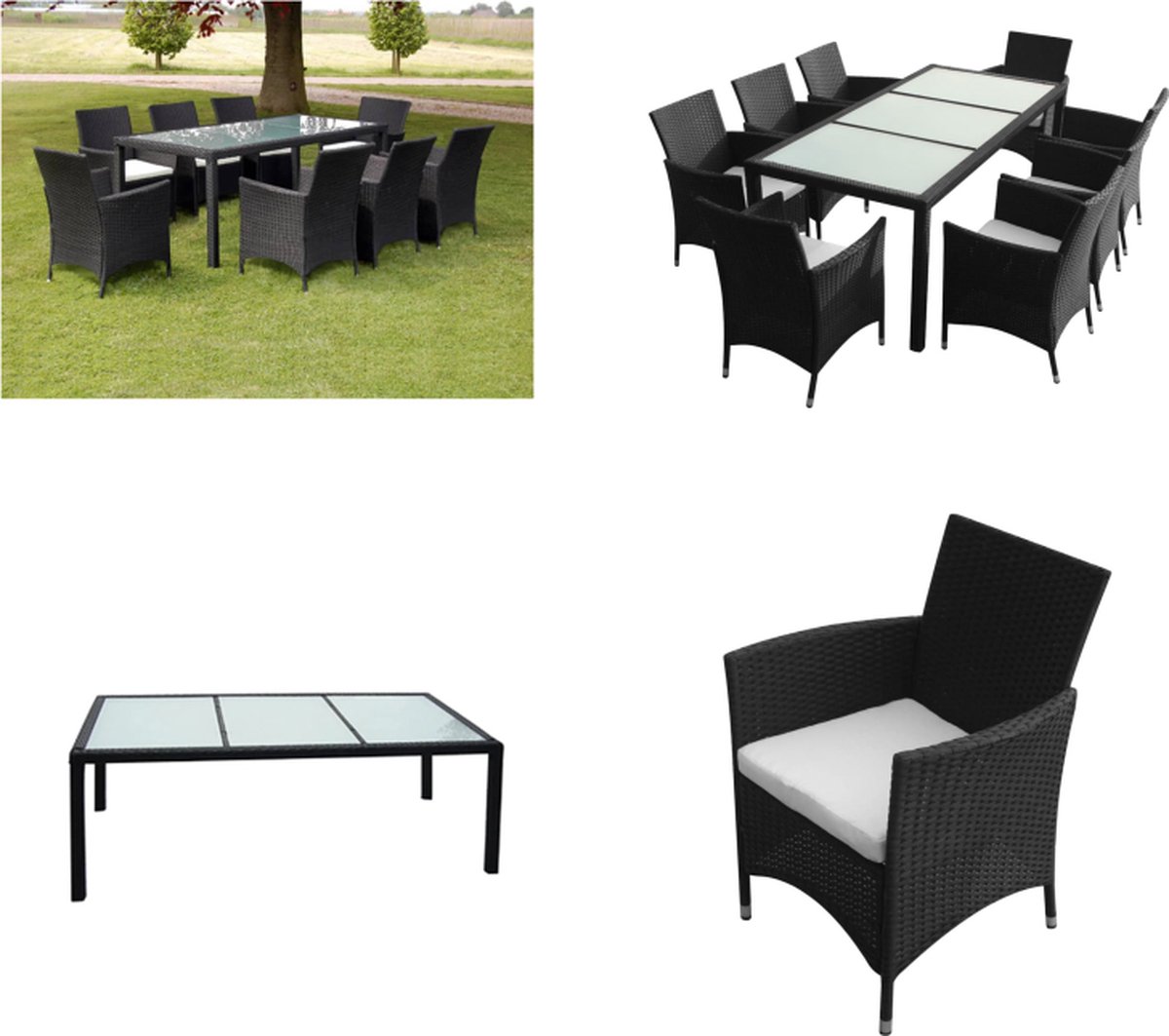 Vidaxl 9-delige Tuinset Met Kussens Poly Rattan - Zwart
