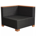 De set wordt compleet geleverd met een bijpassende tafel, perfect voor het serveren van drankjes en hapjes. Het tafelblad en de bovenkant van de armleuningen zijn gemaakt van duurzaam HKC in een warme bruine kleur, wat een elegant contrast creëert met het zwarte rattan. Daarnaast worden alle benodigde kussens en zitkussens meegeleverd, compleet met rits voor eenvoudig onderhoud.