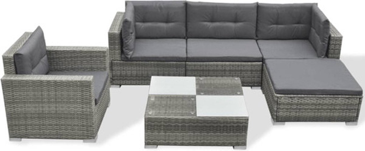 Vidaxl 6-delige Loungeset Met Kussens Poly Rattan - Grijs