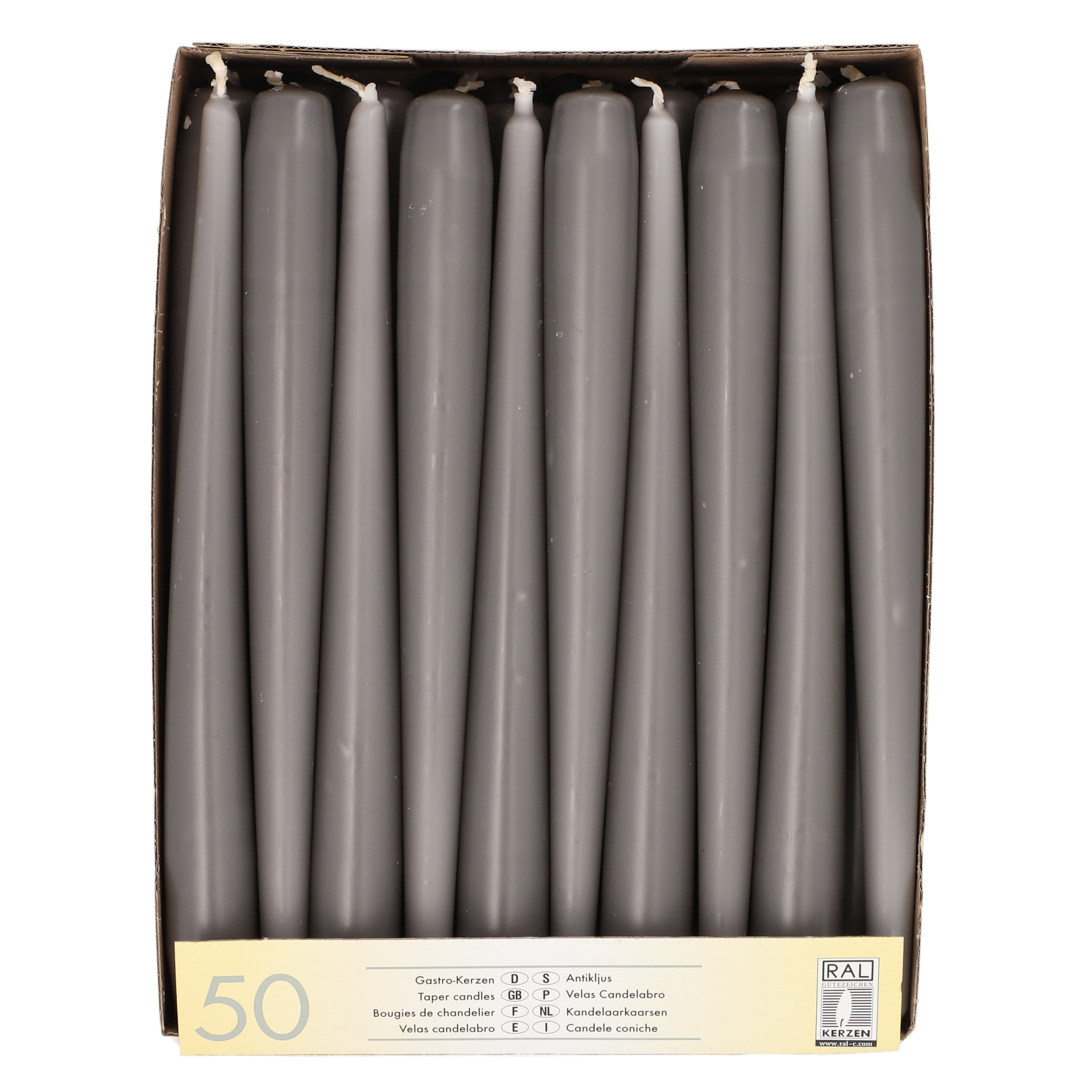 50x Stuks Dinerkaarsen 25 Cm - Dinerkaarsen - Grijs