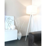 Stijlvolle en Moderne Tafellamp voor een Unieke SfeerDeze statief tafellamp in wit voegt een vleugje individualiteit toe aan elke moderne ruimte. Met zijn strakke design komt deze decoratieve lamp perfect tot zijn recht in een Scandinavisch interieur. De grote lampenkap van polykatoen verspreidt een mooi en diffuus licht, terwijl het witte frame met slanke poten van stevig metaal een moderne charme toevoegt.Hoogwaardige Mat... lees meer over dit product