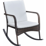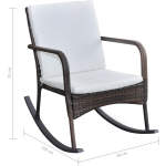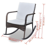 In de kleur bruin rattan en crèmewitte kussens past deze schommelstoel perfect bij elke tuin- of woonkamerinrichting. Met een zithoogte van 46 cm en een hoogte van de armleuningen vanaf de grond van 70 cm, is deze stoel ideaal voor ontspannen momenten.