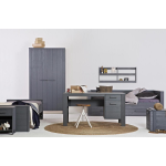 De speelgoedkist is vervaardigd uit FSC gecertificeerd grenenhout en is afgelakt in een trendy betongrijze kleur. Het geborstelde hout accentueert de nerven en noesten, waardoor elke speelgoedkist uniek is. Eventuele oneffenheden, kleine scheurtjes en noesten dragen bij aan de doorleefde uitstraling van het hout. Met een afmeting van 42x90x42 cm (bxhxd) biedt de speelgoedkist voldoende ruimte om al het speelgoed netjes op te bergen.