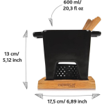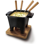 Organiseer je binnenkort een feestje en wil je jouw gasten verrassen met een heerlijke tapas fondue? Dan is de Tapas Fondue Nero L van BOSKA precies wat je nodig hebt. Deze fondueset van aardewerk is ideaal voor het smelten van 400 ml chocolade, kaasfondue of sausjes. Met het bijgeleverde waxinelichtje blijft de inhoud op de perfecte temperatuur. Of het nu gaat om fruit, brood, groenten of vlees, alles kan gedoopt worden in deze stijlvolle fonduepan. Dit complete pakket bevat een kleine fonduepan, vier trendy fonduevorkjes en een onderstel met elegante donker houten accenten. Na gebruik kan de fonduepan eenvoudig in de vaatwasser, waardoor schoonmaken een fluitje van een cent is. Let op: de pan is alleen geschikt voor gebruik in de magnetron en niet voor inductie- of elektrische kookplaten.