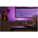 De Philips Hue Play kun je altijd aanpassen aan je interieur. Plaats de lichtbar op een kast voor een aangename sfeer, bevestig hem aan de achterkant van je televisie of leg hem plat op de vloer om je muren van vloer tot plafond te verlichten. De Philips Hue Play past perfect in elke woonkamer.
