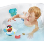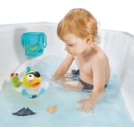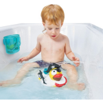 De op batterijen werkende Jet Duck is uitgerust met een ingebouwd waterkanon dat het water in alle richtingen spuit. Je kindje kan zijn fantasie de vrije loop laten en allerlei leuke en verrassende waterspellen creëren. Daarnaast is het badspeeltje voorzien van een handige schepbeker waarmee alle onderdelen snel en eenvoudig uit het water gehaald kunnen worden.