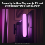 Breid je kijkbeleving uit naar de hele kamer door je verlichting te synchroniseren met je favoriete muziek of televisieprogramma's. Download de Hue Sync app en ontdek de verbazingwekkende mogelijkheden die je kunt bereiken met de Philips Hue Play.