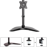 De bureausteun heeft 1 draaipunt en is geschikt voor schermen tot en met 30 inch in diameter. Met een draagvermogen van 10 kilo per scherm en een VESA-gatenpatroon van 75x75 mm of 100x100 mm is deze bureausteun geschikt voor de meeste schermen. De steun is uitgevoerd in een stijlvol zwart design en zorgt voor een geordende en ergonomische werkplek.