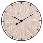 Het stoere uiterlijk van de vintage middenplaat in combinatie met het metalen frame geeft deze klok een uniek karakter. Het gebruik van Romeinse cijfers voegt een klassiek tintje toe aan het design. Hierdoor past deze klok perfect bij een landelijke interieurstijl.