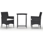 Vidaxl 3-delige Bistroset Poly Rattan En Gehard Glas - Zwart