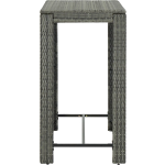 De bartafel is gemaakt van duurzaam PE-rattan, dat bestand is tegen slijtage en ideaal is voor dagelijks buitengebruik. Het gepoedercoate stalen frame zorgt voor stabiliteit en stevigheid, waardoor de tafel lang meegaat. Bovendien is het materiaal gemakkelijk schoon te maken met een vochtige doek.