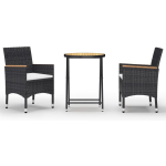 Vidaxl 3-delige Bistroset Poly Rattan En Acaciahout - Zwart