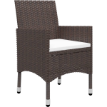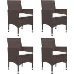 De stoelen zijn uitgevoerd in een prachtige bruine kleur en hebben een frame van gepoedercoat staal bedekt met weerbestendig PE-rattan. Dit materiaal zorgt voor stevigheid en duurzaamheid, terwijl het ook gemakkelijk schoon te maken is. De stoelen hebben een afmeting van 52 x 57 x 84 cm (B x D x H) en zijn voorzien van comfortabele kussens.