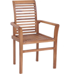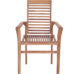 Maak je buitenruimte of eetkamer compleet met deze prachtige houten stapelstoelen. Het tijdloze gelatte ontwerp past perfect in elke setting. Gemaakt van extreem duurzaam teakhout, zijn deze stoelen ontworpen om lang mee te gaan en bestand te zijn tegen alle weersomstandigheden.