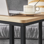 Deze bijzettafel is gemaakt van hoogwaardig P2-spaanplaat en heeft een stevig metalen frame. Hierdoor is het tafeltje niet alleen functioneel, maar ook duurzaam en stabiel. Het frame is voorzien van een elegante zwarte kleur, terwijl het tafelblad is uitgevoerd in een prachtige lichte eikenkleur. De combinatie van deze materialen en kleuren zorgt voor een tijdloze uitstraling die zich gemakkelijk aan elk interieur aanpast.