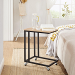 Acaza Bijzettafel Op Wieltjes, Rollend Tafeltje Voor Laptop Of Ontbijt, Lichte Eik Kleur - Bruin
