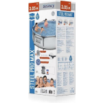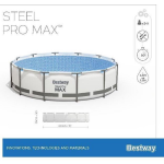 Het Bestway Steel Pro Zwembad wordt geleverd met een 12 V cartridgefilter, die zorgt voor helder en schoon water. De pomp heeft een capaciteit van 1,2 m³/u en de cartridge dient gemiddeld eens per twee weken vervangen te worden. De watercapaciteit van het zwembad bedraagt maar liefst 4.678 liter, wat garant staat voor vele uren zwemplezier.