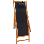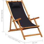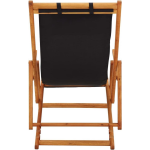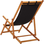 De strandstoel heeft een elegante zwarte kleur en is gemaakt van massief eucalyptushout met een olieafwerking, wat zorgt voor een duurzaam en stijlvol design. De stoffen bekleding is gemaakt van 100% polyester en heeft een gewicht van 230 g/m².