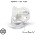 De fopspeen is voorzien van SensoPearls, die vriendelijk zijn voor de huid en de luchtcirculatie verbeteren. Dankzij de ergonomische vorm kan je baby gemakkelijk ademen en zelfs jouw vertrouwde geur ruiken. Bovendien wordt de fopspeen geleverd met een handige beschermkap, zodat je hem hygiënisch kunt vervoeren.