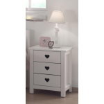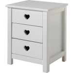 Het Vipack Amori Nachtkastje Wit is een kwalitatief hoogwaardig kastje met drie opbergladen. Elk front van de lade is voorzien van een geïntegreerd hart, wat zorgt voor een sfeervolle en romantische uitstraling.