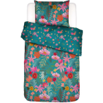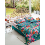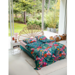 Dit petrolkleurige dekbedovertrek is versierd met de meest prachtige bloemen in roze, oranje, en groene tinten. De achterzijde is gedecoreerd met kleine bloemetjes in dezelfde kleuren. Met dit overtrek breng je gegarandeerd wat flower power in je slaapkamer!