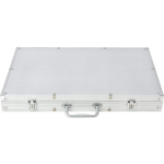 De Las Vegas Poker Set is niet alleen functioneel, maar ook nog eens een lust voor het oog. De koffer is gemaakt van hoogwaardig aluminium en heeft een stijlvolle meerkleurige afwerking. Met een afmeting van 53 x 37 x 6,7 cm (L x B x H) biedt de koffer voldoende ruimte om al je benodigdheden op te bergen.