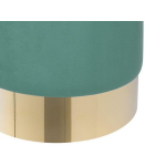 Voeg een vleugje luxe toe aan je interieur met deze gevoerde fluwelen poef met gouden accent. Gemaakt van duurzaam fluweel polyesterstof in een prachtige groene kleur, voelt deze poef niet alleen heerlijk zacht aan, maar is hij ook slijtvast en duurzaam. De gouden voet benadrukt het moderne ontwerp en voegt een glamoureuze uitstraling toe aan elke ruimte.
