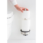 In het kleinste kamertje maken nieuwe accessoires het grootste verschil. Met de minimalistische Brabantia Profile wc rolhouder van hoogwaardig RVS transformeer je jouw toiletruimte tot een stijlvolle en functionele plek. De rolhouder kan aan de muur worden gehangen met de meegeleverde muurbeugel of op de grond worden geplaatst, waardoor je altijd maximaal 3 wc-rollen bij de hand hebt.