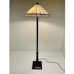 Luxe Tiffany stijl beige glas in lood staande lamp met Art deco motief
