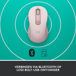 Maak snel en eenvoudig verbinding met de Logitech Signature M650 L via Bluetooth Low Energy of de Logi Bolt USB-ontvanger. Deze muis is compatibel met Windows, macOS, Linux, Chrome OS, iPad OS en Android-besturingssystemen, waardoor u moeiteloos kunt schakelen tussen verschillende apparaten.